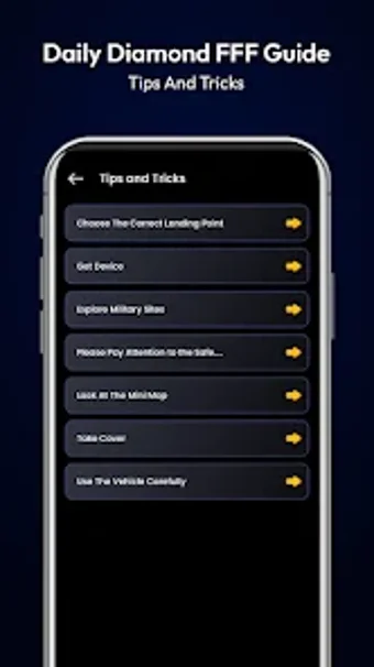 مع نصائح وحيل للحصول على الماس اليومي في أداة الجلد FFF ودليل شامل عن الماس FFF، يمكن للمستخدمين أن يتعلموا كيفية الحصول على أدوات جلدية مجانية، وإيموتات، وعربات، وأسلحة أسطورية باستخدام دليل الباس النخبة fff المدرج في التطبيق.